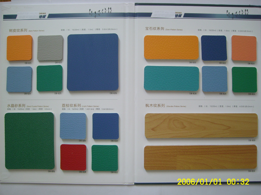 室內塑膠地板紋路及顏色的樣板: