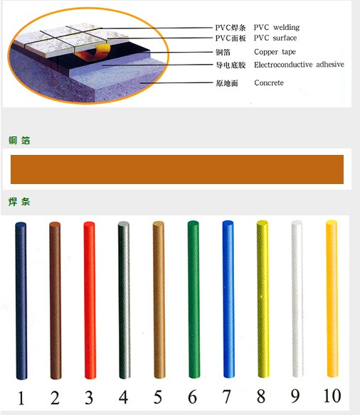4.1防靜電PVC地板的電阻104-109Ω。