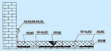 清掃地面 → 涂導電膠→ 鋪接地導電網 → 引出地線 → 鋪貼地板 → 開槽→ 焊地板縫 → 表面清潔 → 檢測性能
